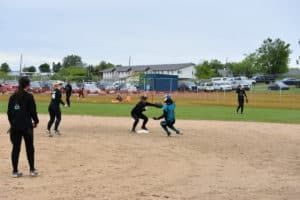 What’s the score Greg? She’s OUT HOLLAND SLIDING! I want to be a catcher… I wonder if this will fit me… Lauren will you teach me to catch? Put me in coach Can I keep the hat coach?